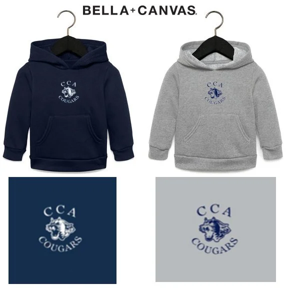 Item: Calvary Chapel Academy Bella + Canvas Toddler Sponge Fleece Pullover Hooded Sweatshirt, Mascot Logo #3719T